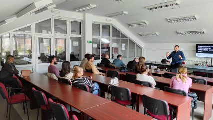 The lecturer, Mr. Radivoje Drobnjak, Program Activities Manager at the Science and Technology Park of Montenegro, shared his extensive experience and examples of good practices in preparing competitive project proposals and presented concrete tools that can support the development and implementation of business ideas.